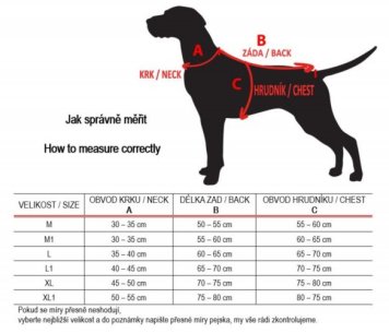 Dĺžka chrbta (C) určuje danú veľkosť oblečku a je uvedená v názve každého produktu. Meranie vykonávajte vždy, keď pes stojí - ak je nepokojný, poproste o pomoc ďalšiu osobu